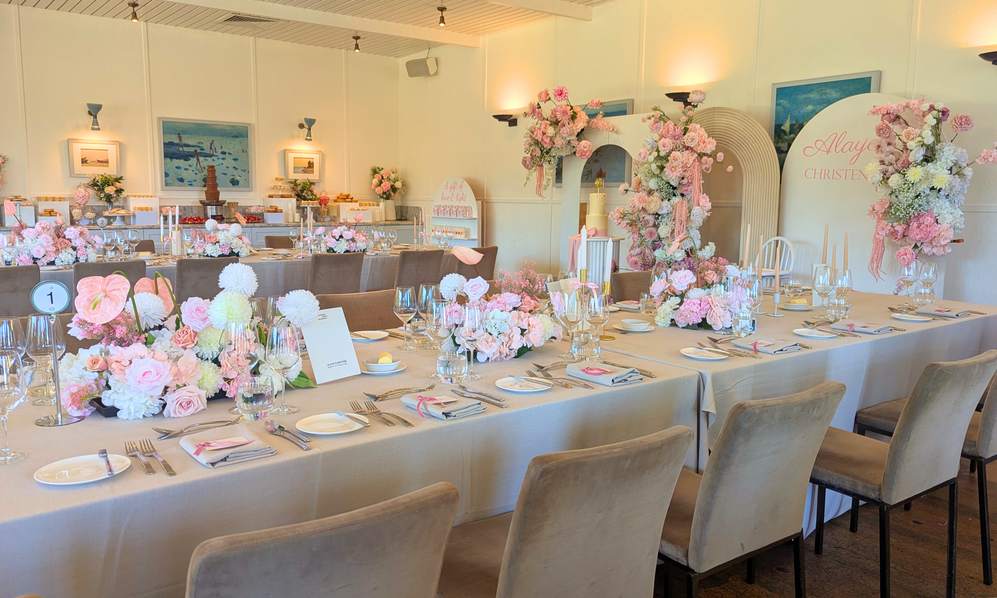 Customisable to your theme, we’ll design a unique floral arrangement just for you, creating a stunning statement piece for your celebration.