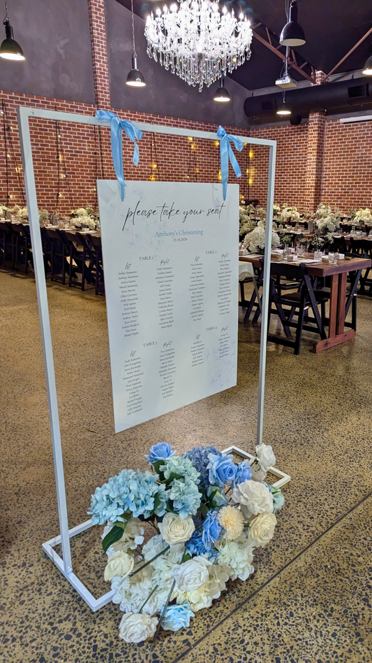 Enhance your baby shower with a personalised welcome sign, custom-designed to complement your theme. This elegant touch creates a warm first impression and elevates your event décor.