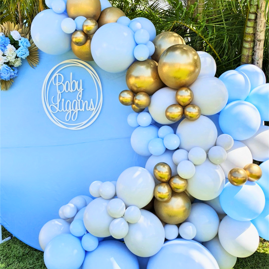 Baby Shower Backdrop with Balloon Garland on a Circular Frame