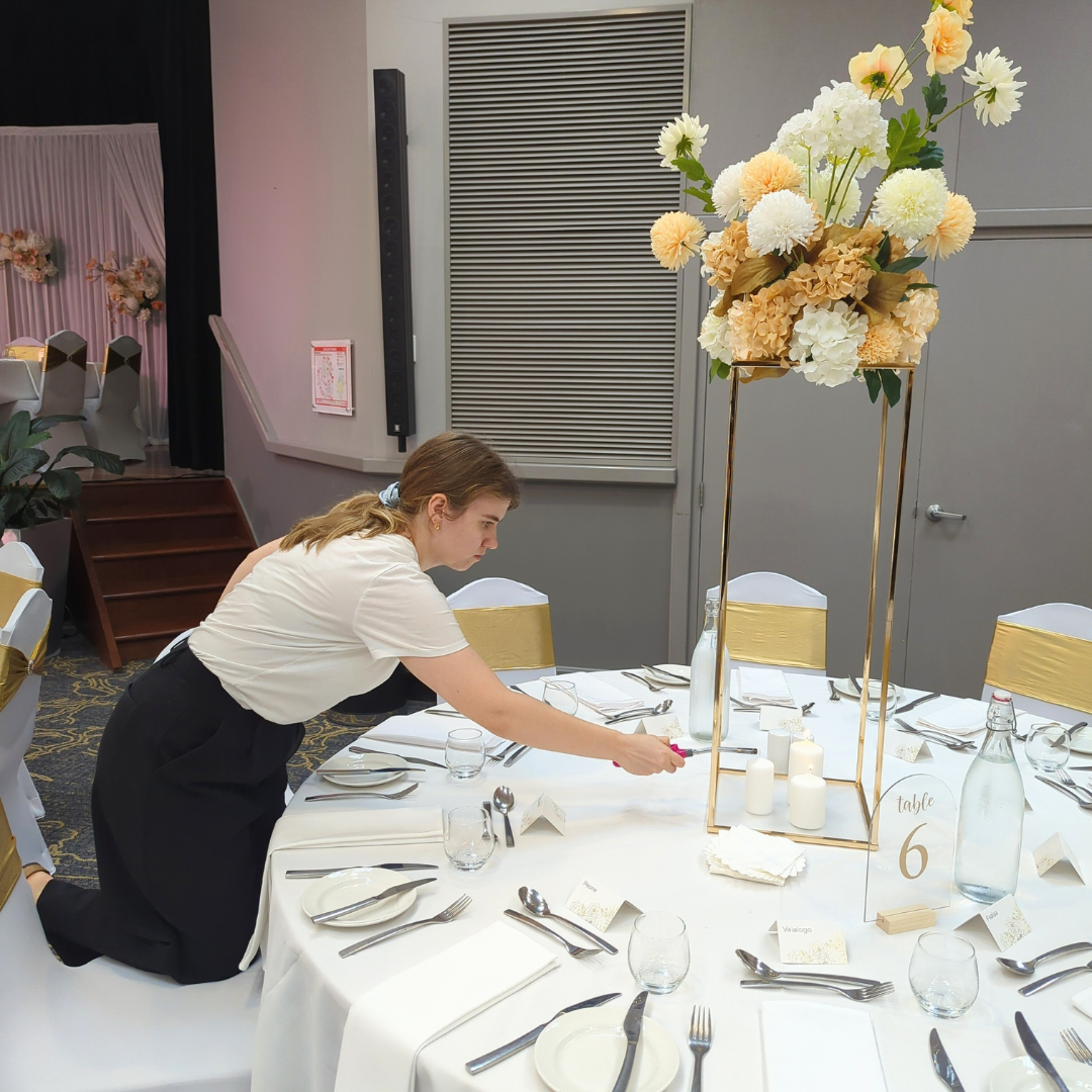 Louie brings styling concepts to life through careful setup and attention to detail. As an the Event Stylist and Event Operations Support, she focuses on the execution from coordinating logistics and managing inventory to ensuring every element is perfectly in place. Her role is about turning plans into seamless, beautifully finished events that feel effortless for you.