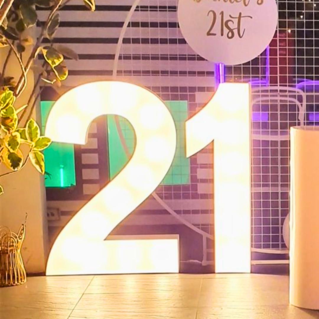 Enhance your event styling with our LED 21, a sleek and modern LED sign that adds a radiant touch to any backdrop. Perfect for birthdays, engagements, and milestone celebrations, this eye-catching feature creates an unforgettable ambience for your special moments.